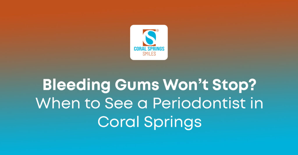 If you’re experiencing persistent gum bleeding or discomfort, the experienced team at Coral Springs Smiles is here to help. With advanced periodontal care, they provide effective solutions tailored to your needs. Schedule your consultation today and take the first step toward healthier gums and a confident smile.